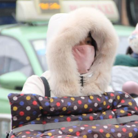 资料图:民众出行时,穿着棉袄保暖。 李明明 摄