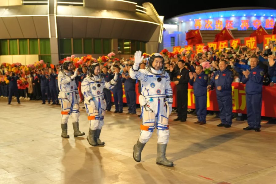 群众夹道为太空三人组壮行