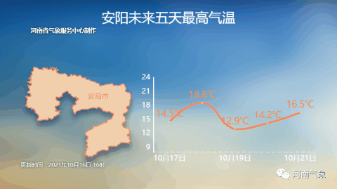 受冷空气影响,18日后半夜到19日白天,全省偏北风4级左右,阵风6级左右;19日北中部最高温度较18日下降4到6度。