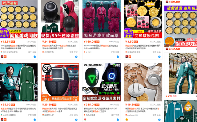 购物平台上出现众多《鱿鱼游戏》同款商品。(截屏图)
