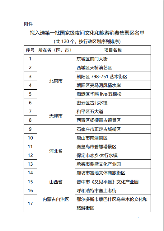 文化和旅游部10月19日发布《关于第一批国家级夜间文化和旅游消费集聚区名单的公示》: