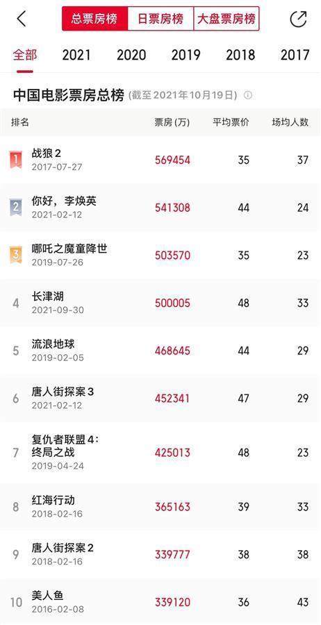 《长津湖》票房破50亿,位列中国影史票房第四