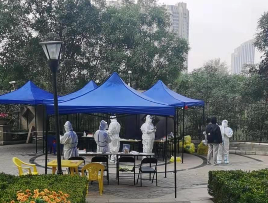 ▲在中风险地区的小区内,已搭建好核酸检测点。受访者供图