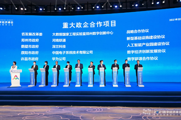 在重大合作签约环节,省政府与华为、曙光签订了战略合作协议,省发展改革委、有关地市与重点企业围绕新型基础设施建设、人工智能发展、数字能源合作等方面进行了集中签约,落地了河南联通新型基础设施、深兰科技人工智能产业园、中国系统数字经济创新发展、华为公司数字能源、荣科科技数字健康、东华软件全国数字乡村总部、长城集团网信产业基地、智慧城市建设等一批重大项目,取得了积极成效。