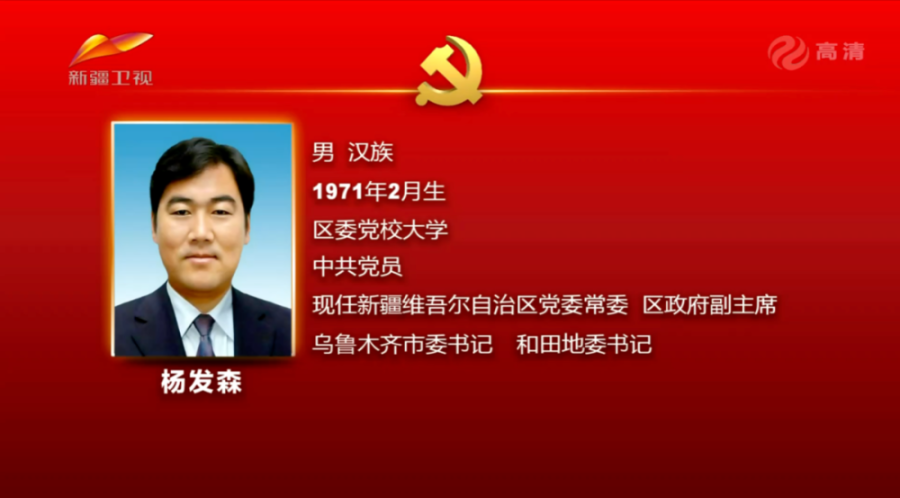 杨发森(1971年2月生,区政府副主席,乌鲁木齐市委书记,和田地委书记)