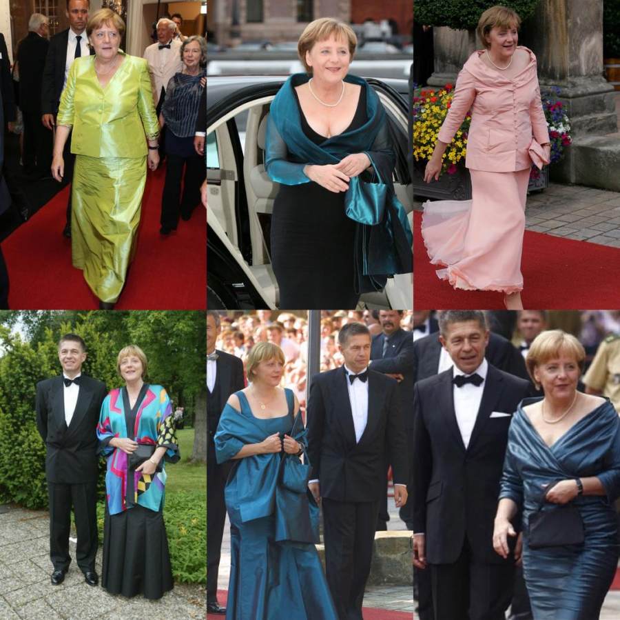 当然,在默克尔的总理生涯中,还是有脱下西装、穿上礼服的高光瞬间,也在色彩上做出了大胆尝试,让这位德国政坛“铁娘子”也留下了不少华贵倩影。