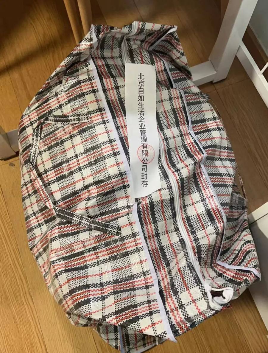 但直到20日,王涵仍没有收到退款,再度联系张某,对方已经失联。21日上午,同样向张某租房的同事告诉王涵,自己被中介找上门。意识到张某可能已经跑路,王涵赶回家打算取证据报警,却发现自家房门已经无法打开。警察赶到后进入家中,王涵发现自己所有的行李已经被打包,并贴上了“北京自如生活企业管理有些公司封存”的字样。