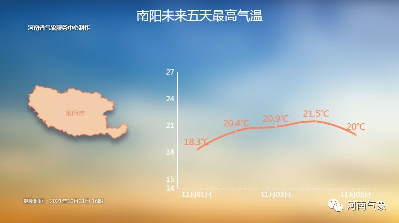 明天白天,三门峡、洛阳两地区和南阳、平顶山两地区西部阴天转小雨或零星小雨;其它地区多云。
