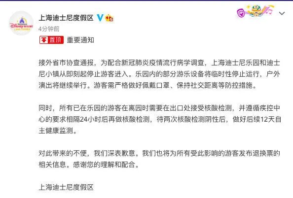 上海迪士尼紧急闭园!近两日进入人员立即核酸