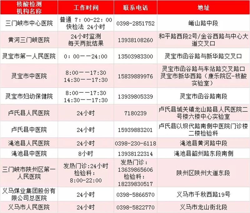河南471家核酸检测机构名单