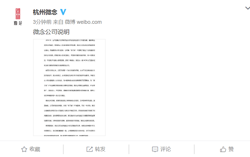 杭州微念回应与李子柒纷争,称从未控制过其相关平台账号