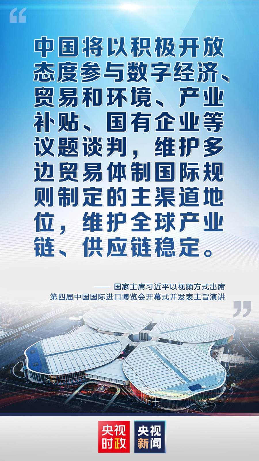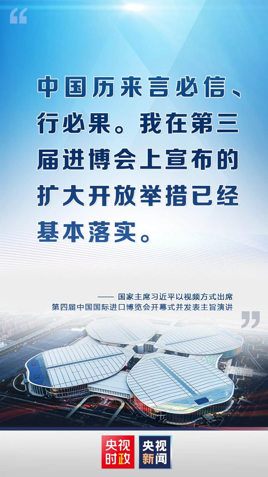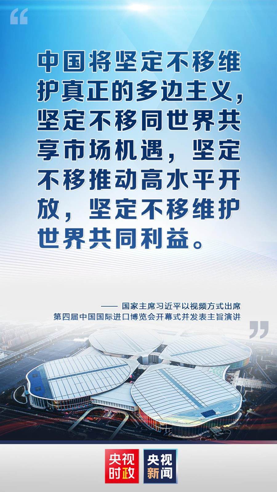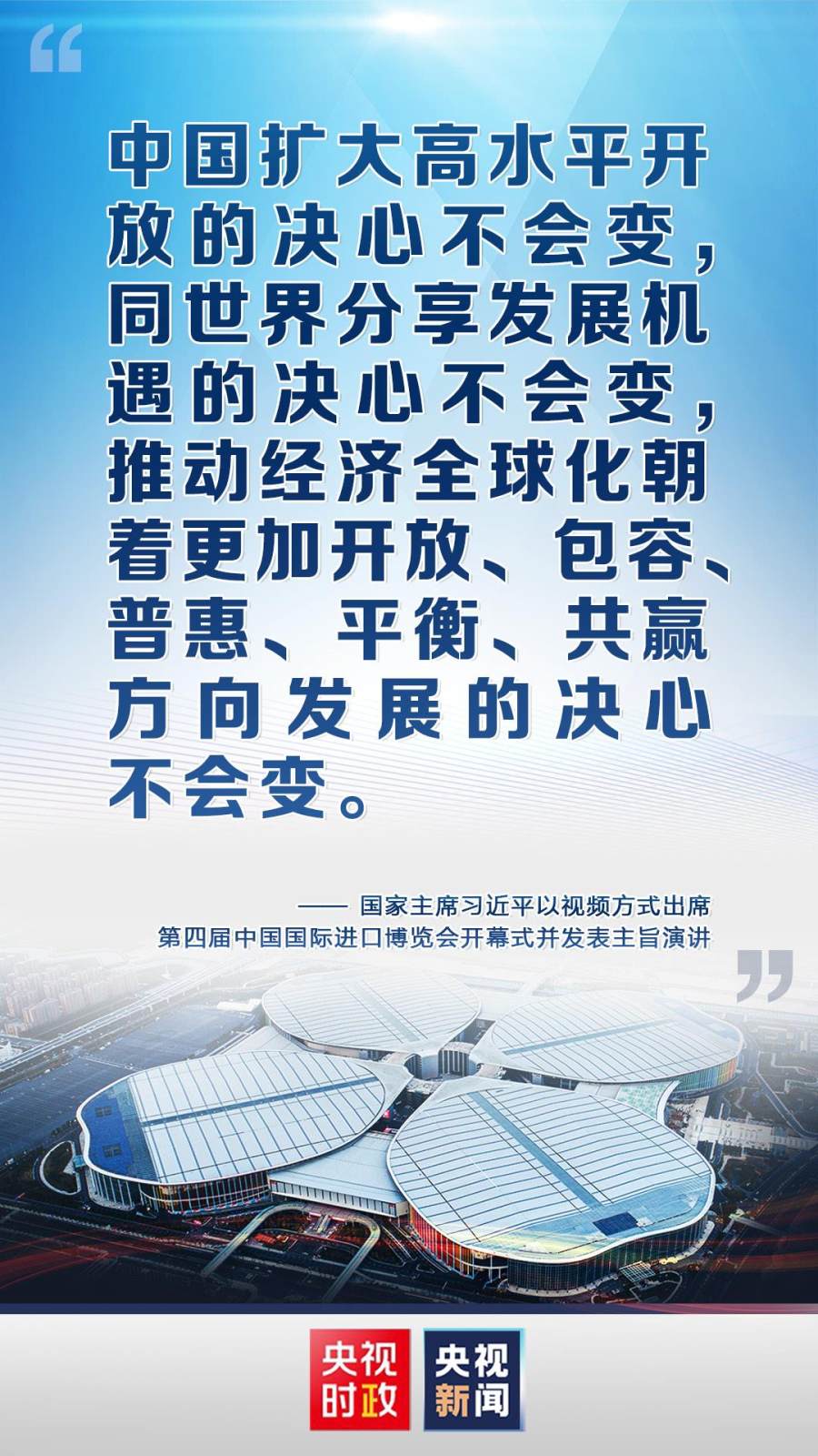 国家主席习近平4日以视频方式出席第四届中国国际进口博览会开幕式并发表主旨演讲。