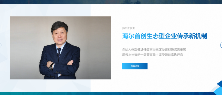 11月5日,海尔集团官网发布消息《海尔首创生态型企业传承新机制——创始人张瑞敏辞任董事局主席受邀担任名誉主席 周云杰当选新一届董事局主席受聘首席执行官》。以下是文章全文: