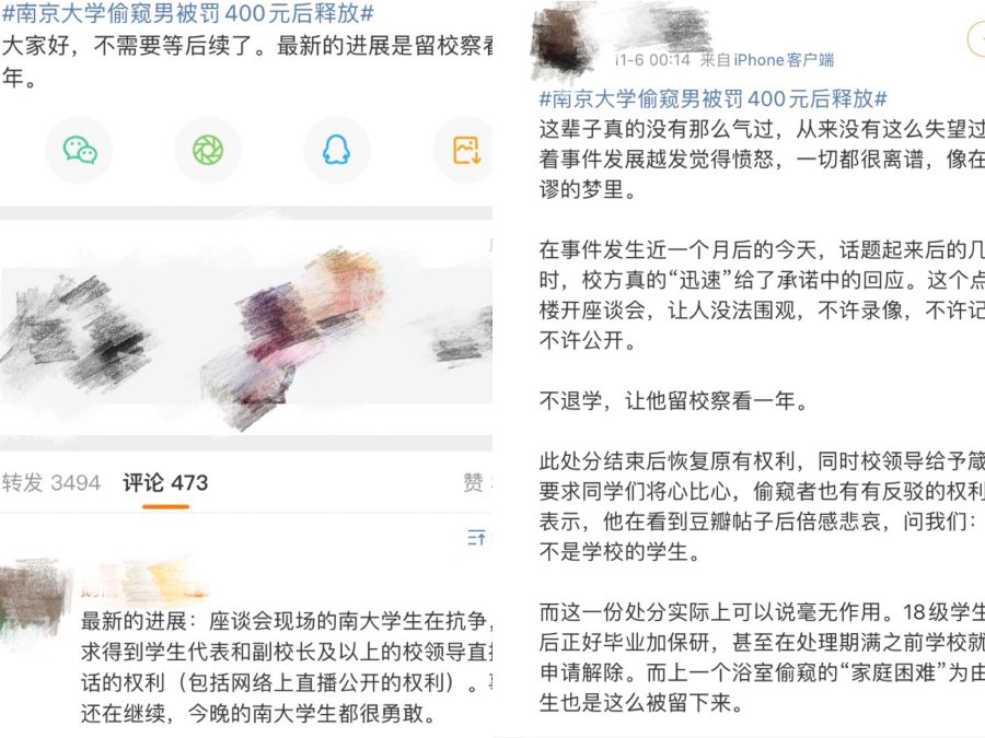 卫生间偷窥女生,仅被留校察看一年?南京大学多同学称不满处理结果