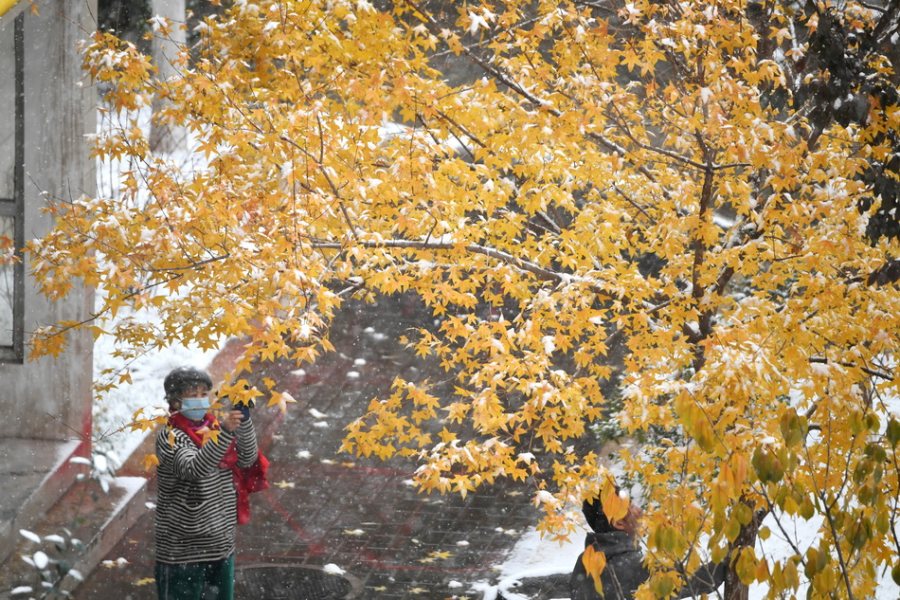 2021年11月6日,北京海淀区迎来降雪天气。