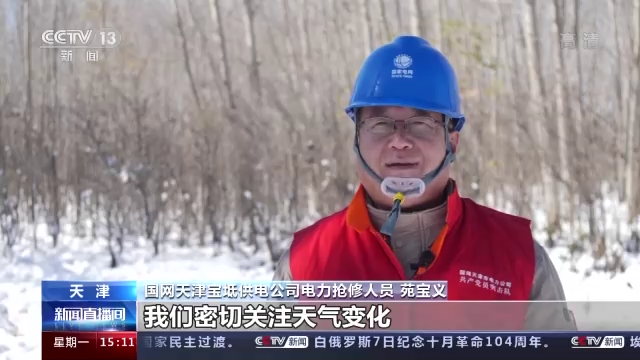 国网天津宝坻供电公司电力抢修人员 苑宝义:我们紧密关注天气变化,以雪为令迅速集结,全力以赴保供电、保民生。