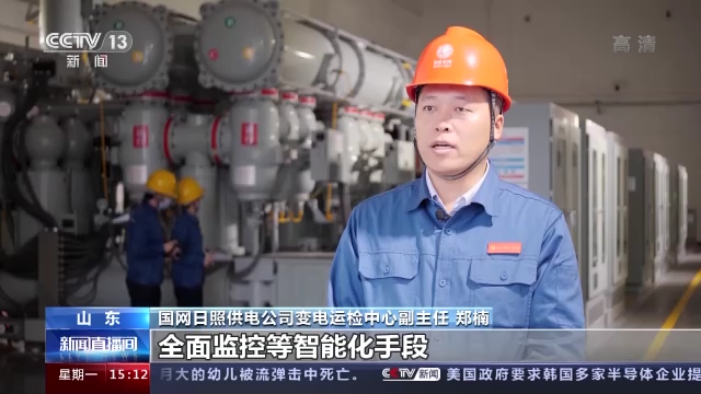 国网日照供电公司变电运检中心副主任 郑楠:我们通过应用智能巡检机器人、全面监控等智能化手段,结合人工巡检方式开展电网设备特巡,确保电力安全可靠供应。