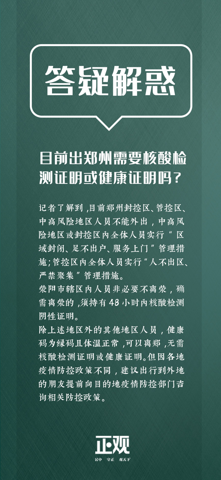 答疑解惑|目前,进出郑州需要哪些证明?