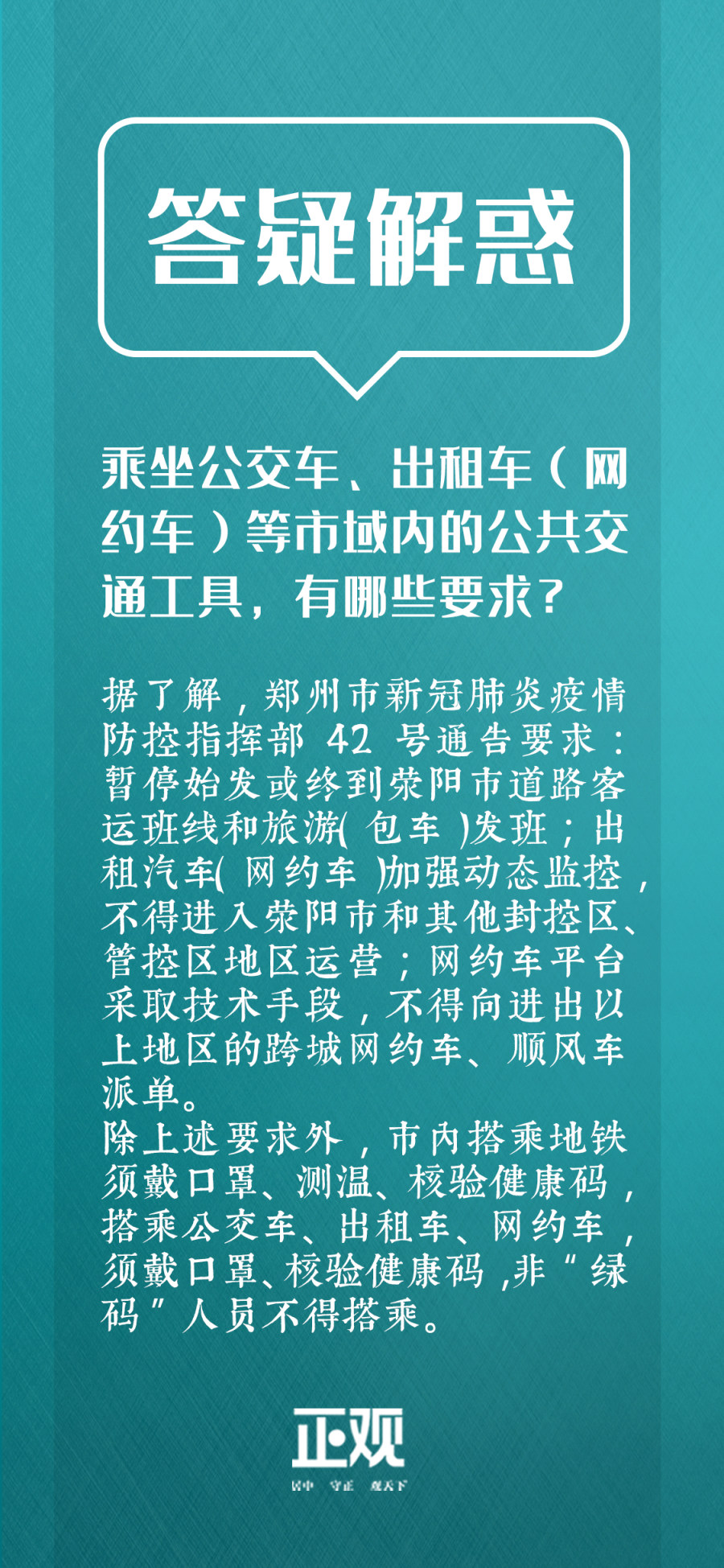 据了解,郑州市新冠肺炎疫情防控指挥部42号通告要求:暂停始发或终到荥阳市道路客运班线和旅游(包车)发班;出租汽车(网约车)加强动态监控,不得进入荥阳市和其他封控区、管控区地区运营;网约车平台采取技术手段,不得向进出以上地区的跨城网约车、顺风车派单。