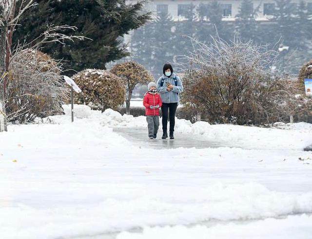 2021年11月8日,吉林省出现雨雪冰冻天气,市民在长春街头行走。新华社记者 颜麟蕴 摄