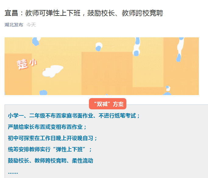 湖北宜昌:教师可弹性上下班,鼓励校长、教师跨校竞聘