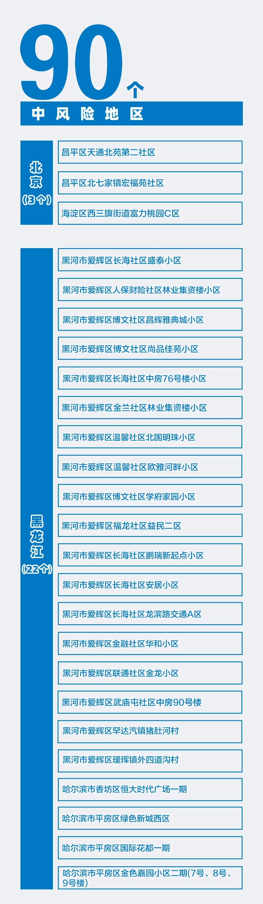 目前全国有7+90个中高风险区