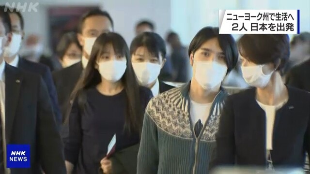 综合日本共同社英文网、NHK英文网等媒体报道,真子与丈夫小室圭14日8时许抵达东京羽田机场,搭乘民航客机前往美国纽约。两人在多名警员和机场人员的护送下登机,离开前对日本皇室和支持他们的人表示感谢。