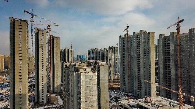 长春市生态大街附近的一处在建楼盘(2月22日,无人机照片)。新华社。