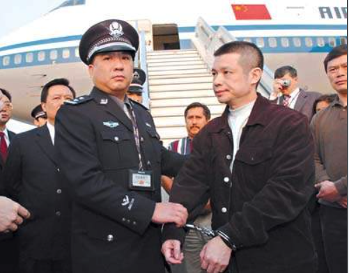 2004年4月,中国警方在对被押送回国的余振东执行逮捕。