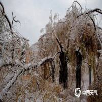 11月9日,哈尔滨遭遇雨雪冰冻天气,大树被压断。(图/林松)