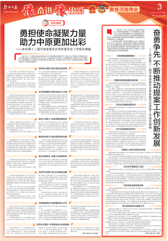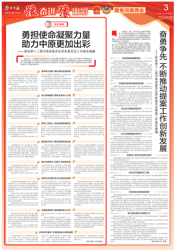 报告摘编|勇担使命凝聚力量助力中原更加出彩——政协第十二届河南省委员会常务委员会工作报告摘编
