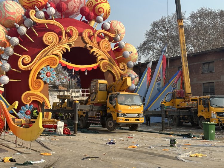 探班郑州龙年迎春灯会:“五龙呈祥”巨型灯组6天后搭建完毕