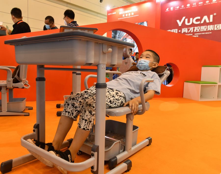 博览会现场,育才控股集团带来的多款创新研发的多功能午休椅吸引不少家长关注。“午休时,椅背向后调即可舒适午休,午休结束后,恢复坐立状态,实现座与躺的转换。”来到该产品展览现场,记者看到,在工作人员的帮助下,一位八岁的男孩正在体验着这款可以平躺的课桌椅。“这种可以午休的椅子功能挺不错,可以让孩子中午休息得更舒服些。”站在一旁的孩子家长高兴地说。