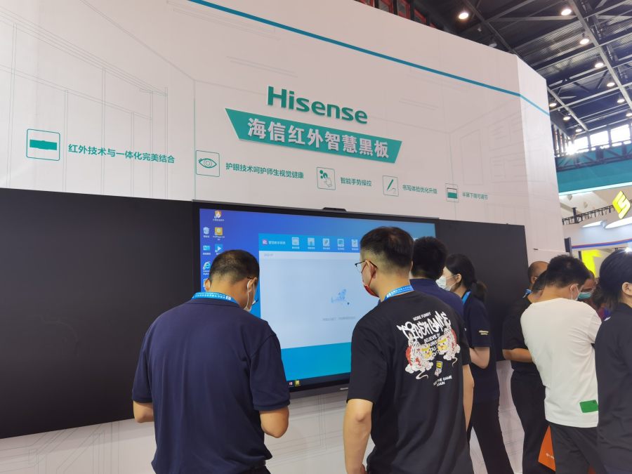 电容智慧黑板、红外智慧黑板、红外一体机……作为总冠名单位,海信商用显示公司以“全场景、大视界”为主题,将408平方米最大参展面积打造成“寓教于境”的教育场景,诸多新产品、新技术成为博览会的关注焦点。