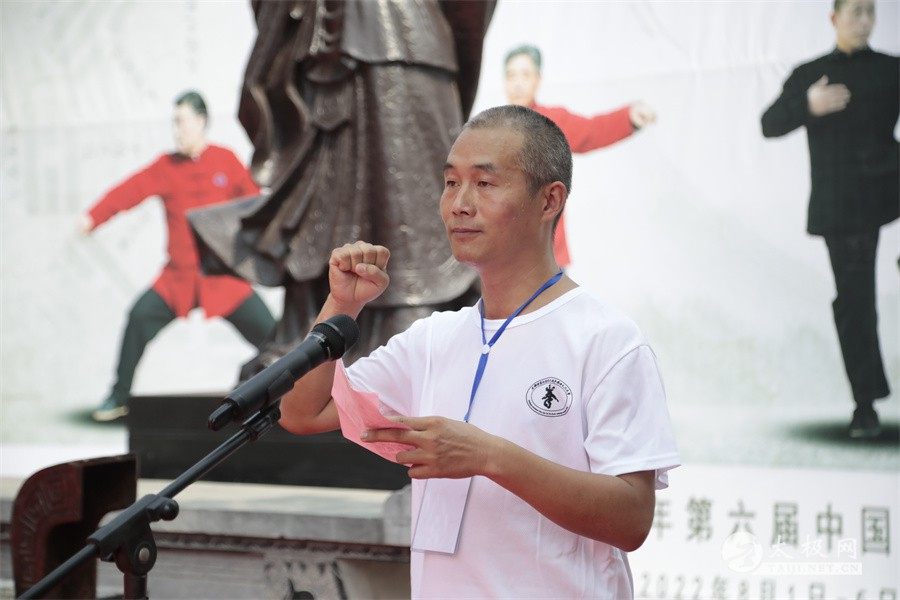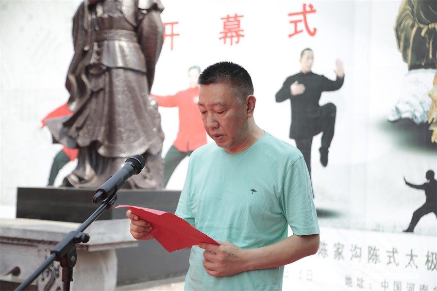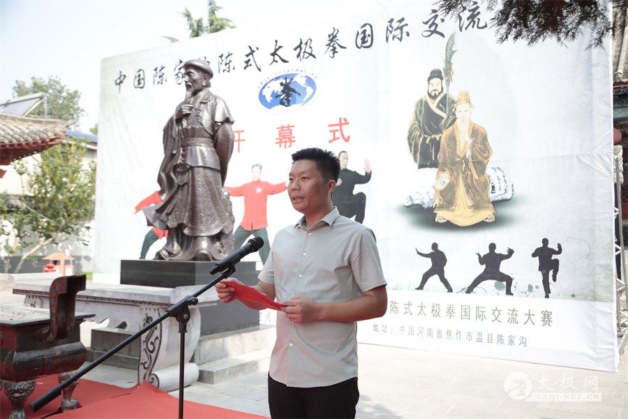 陈家沟村委会书记陈冲代表村委会对拳友们来到陈家沟表示欢迎,对大赛的隆重举办表示祝贺。他说,作为太极拳发源地一员,正确引导大众对太极拳以及太极文化的认可与习练,是自己义不容辞的责任。本次大赛是以太极竞赛为主线,多个主题活动融汇举办,传播太极正能量,将让更多的爱好者通过参与比赛感受到陈家沟和太极文化的魅力。